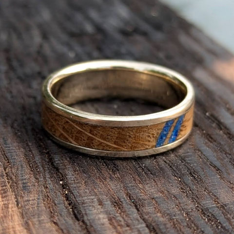 We've progressed a bit since our first copper and walnut rings, but our love of wood remains. Walnut and Oak are some of our most popular varieties, but we also love to work with wood supplied by or requested by our customers - although if it isn't available from an FSC certified source we'll propose alternatives.